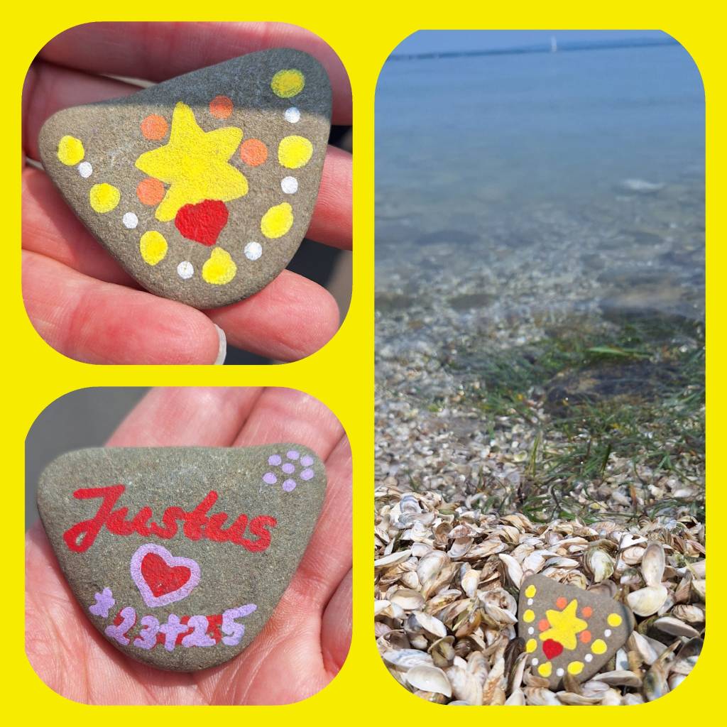 Wenn du an Justus denken möchtest, bemale doch einen Stein mit seinem Namen, einem Symbol oder etwas, das dich an ihn erinnert. Nimm ihn mit auf deine Reise – ob in den Wald, ans Meer oder einfach in deinen Alltag. Wenn du magst, mach ein Foto und schick es mir. Ich poste es hier oder auf Instagram – als Zeichen, dass Justus Spuren hinterlässt, wo Menschen ihn im Herzen tragen.